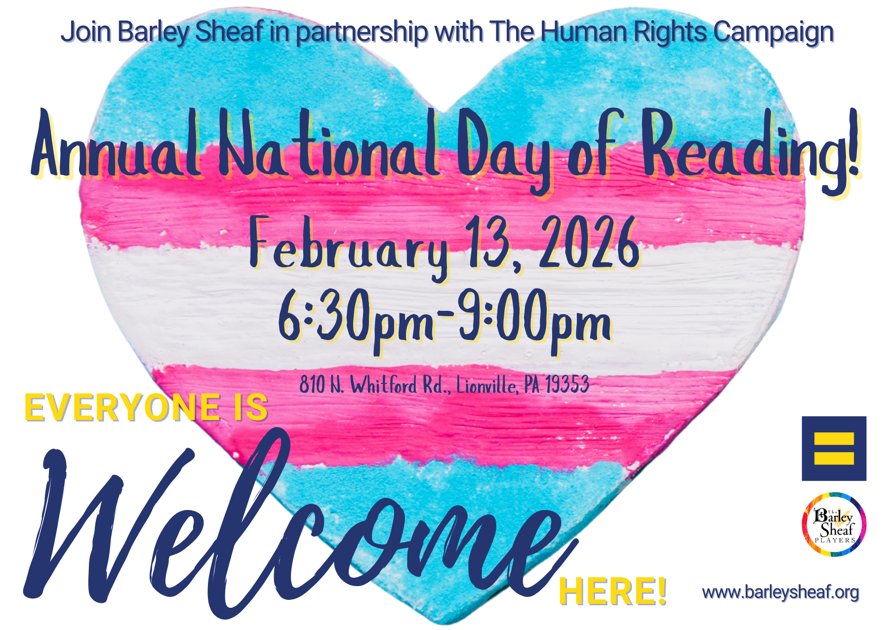 The Barley Sheaf Players, in partnership with HRC’s Welcoming Schools, invites you to a special evening of stories, community, and support for trans and non-binary youth!